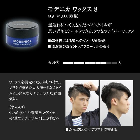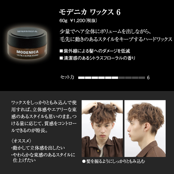 少量でヘア全体にボリュームを出しながら、毛先に動きのあるスタイルをキープするハードワックス